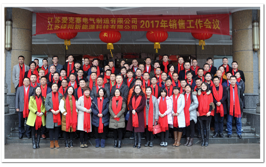 2017年2月8日,江蘇愛(ài)克賽電氣制造有限公司、江蘇綠陽(yáng)新能源科技有限公司2017年銷(xiāo)售工作會(huì )議在揚州花園國際酒店圓滿(mǎn)召開(kāi)。