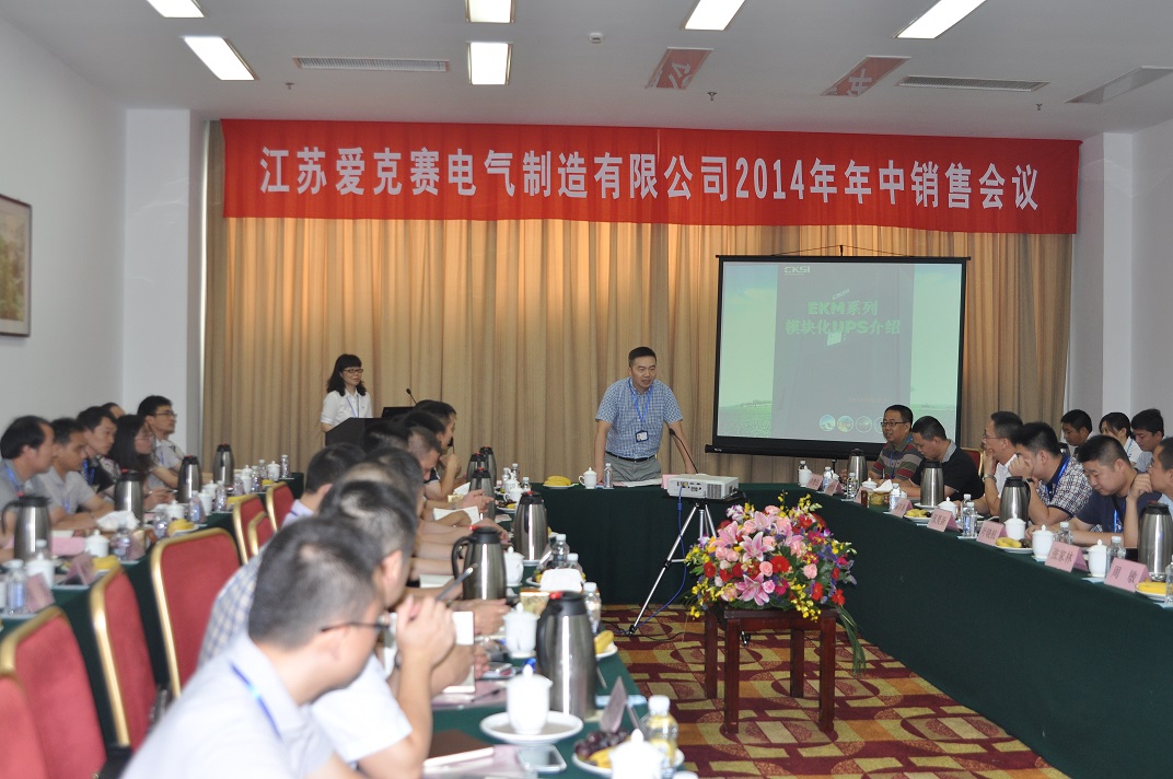 2014年7月13日,在揚州會(huì )議中心召開(kāi)了“江蘇愛(ài)克賽電氣公司2014年年中營(yíng)銷(xiāo)工作會(huì )議”。參加本次會(huì )議的有:江強董事長(cháng)、公司各部門(mén)管理人員、以及各辦事處業(yè)務(wù)經(jīng)理,本次會(huì )議由李淑艷副總經(jīng)理主持。