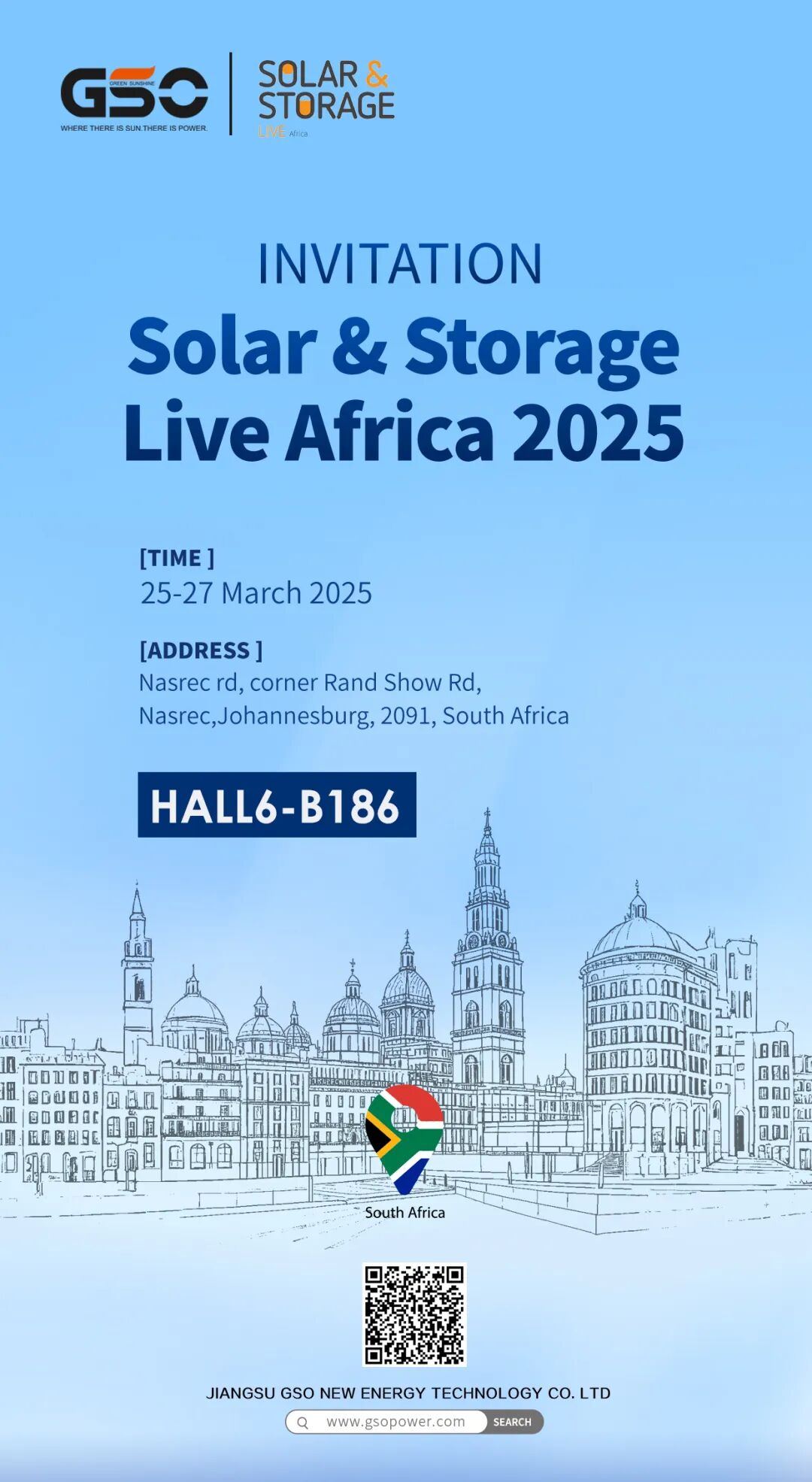 南非國際光伏儲能展將于2025年3月25-27日在南非約翰內斯堡展覽中心舉行,誠摯地邀請您光臨Solar & StorageLive Africa 2025展會(huì ),與江蘇綠陽(yáng)新能源共聚這場(chǎng)能源行業(yè)的年度盛會(huì )!我們在6號館B186號展位,敬請蒞臨。