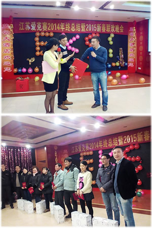 躍馬騰飛去,三羊開(kāi)泰來(lái)。伴隨著(zhù)新春的腳步,我們迎來(lái)了嶄新的2015年!在這喜慶的日子里,江蘇愛(ài)克賽電氣于2015年2月10日舉行了以:“奔跑吧,愛(ài)克賽!”為主題的迎新春聯(lián)歡晚會(huì ),公司董事長(cháng)、總經(jīng)理江強先生、副總經(jīng)理李淑艷女士攜全體員工及家屬歡聚一堂,共享喜悅。江強先生在充滿(mǎn)激情、富有感染力的新春致辭中向全體員工及家屬表達了最誠摯的節日問(wèn)候和最美好的祝愿!